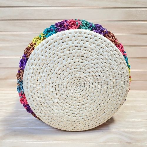 Bolso circular de paja toquilla, mismo material sustentable que nuestros sombreros. Elaborado a mano por artesanos de Ecuador.