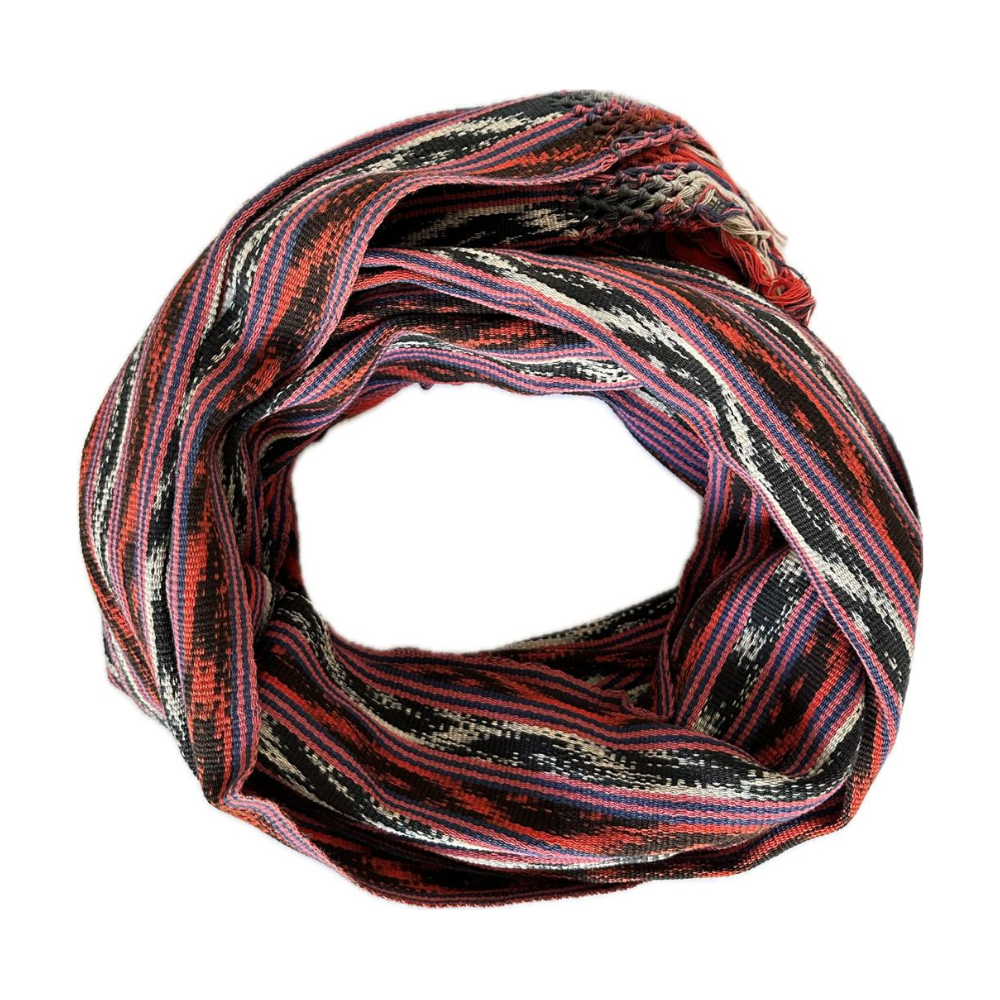 Bufanda de algodón teñida con fibras naturales bajo la técnica del Ikat.