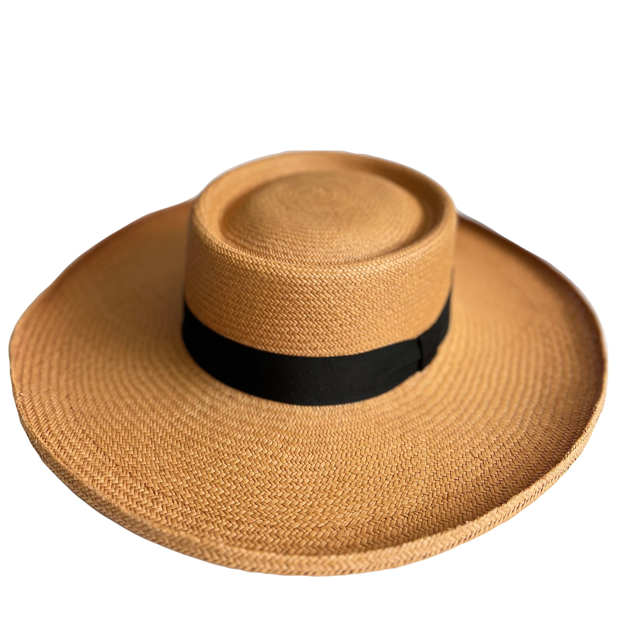 Sombrero de mujer modelo boater ala ancha de 10cm. Escoge el color de cinta que más te guste.