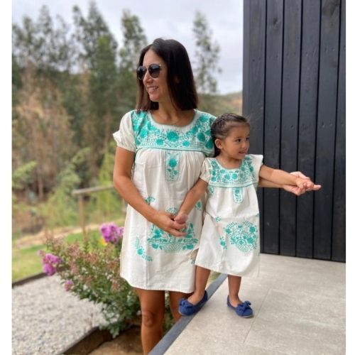 El vestido de mamá es talla única S/M y para niña hay de 2, 4 o 6 años.